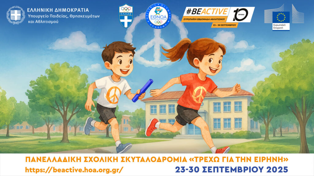 Το Υπουργείο Παιδείας, Θρησκευμάτων και Αθλητισμού, η Ελληνική Ολυμπιακή Επιτροπή, η Εθνική Ολυμπιακή Ακαδημία και το Ευρωπαϊκό Πρόγραμμα #BEACTIVE, συγχαίρουν όλες τις σχολικές μονάδες της χώρας για τη συμμετοχή τους στην Πανελλαδική Σχολική Σκυταλοδρομία «Τρέχω για την ΕΙΡΗΝΗ» 2025, η οποία διοργανώθηκε στο πλαίσιο της Ευρωπαϊκής Εβδομάδας Αθλητισμού, της Ευρωπαϊκής Ημέρας Σχολικού Αθλητισμού και της 12ης Πανελλήνιας Ημέρας Σχολικού Αθλητισμού.