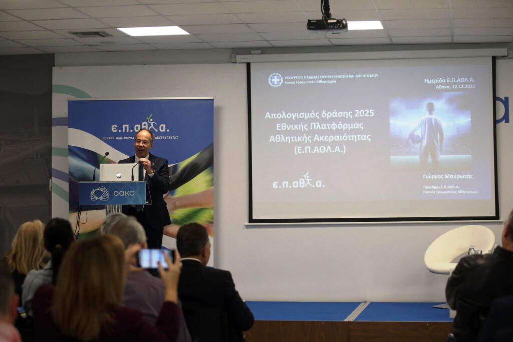 Με επιτυχία πραγματοποιήθηκε στην -κατάμεστη από εκπροσώπους όλων των αθλητικών φορέων- Αίθουσα Τύπου του ΟΑΚΑ, η απολογιστική ημερίδα της Εθνικής Πλατφόρμας Αθλητικής Ακεραιότητας (ΕΠΑΘΛΑ) για το 2025 και ο προγραμματισμός των δράσεων και των πρωτοβουλιών για το 2026