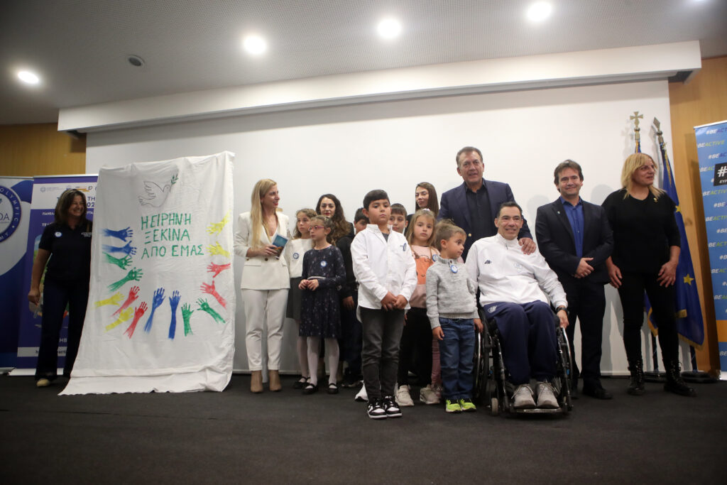 Παρουσία του Αναπληρωτή Υπουργού Παιδείας, Θρησκευμάτων και Αθλητισμού, Γιάννη Βρούτση, των Υφυπουργών Νίκου Παπαϊωάννου και Κώστα Βλάση, των Γενικών Γραμματέων Αθλητισμού, Γιώργου Μαυρωτά, Ανώτατης Εκπαίδευσης, Δημήτρη Μπουραντώνη, Πρωτοβάθμιας/ Δευτεροβάθμιας Εκπαίδευσης και Ειδικής Αγωγής, Γιάννη Παπαδομαρκάκη και της Επαγγελματικής Εκπαίδευσης, Κατάρτισης και Δια Βίου Μάθησης, Όλγας Καφετζοπούλου, του Προέδρου της ΕΘΝΟΑ και δις Ολυμπιονίκη, Δημοσθένη Ταμπάκου, της ΓΓ της ΕΘΝΟΑ Ντόρας Πάλλη, του Προέδρου της ΔΟΑ, Καθ. Χαρίλαου Τσολάκη, της Αντιπεριφερειάρχου Ολυμπιακού Ιδεώδους Αττικής και Olympian της Γυμναστικής, Βασιλικής Μιλλούση, του Υπηρεσιακού Γραμματέα ΥΠΑΙΘΑ, Γιάννη Βλάση, του Προϊστάμενου της Διεύθυνσης Φυσικής Αγωγής ΥΠΑΙΘΑ, Δημήτρη Κερερέ και πλήθους εκπροσώπων των αθλητικών φορέων, μαθητές και εκπαιδευτικοί έστειλαν μέσα από τις δημιουργίες τους ηχηρό μήνυμα υπέρ της Ειρήνης, στις κατηγορίες που διαγωνίστηκαν (βίντεο, φωτογραφία, μότο, πανό).