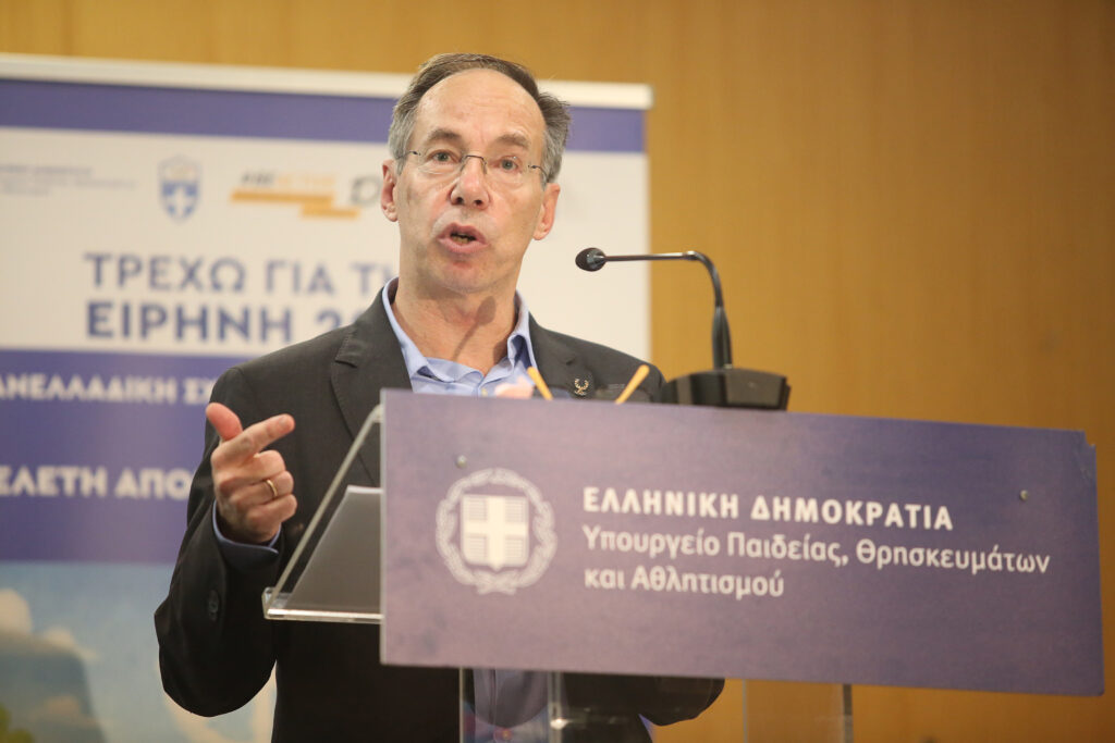 Το σχολείο και αθλητισμός είναι δύο πράγματα όχι ανταγωνιστικά, είναι δύο πράγματα συμπληρωματικά. Σχολείο και αθλητισμός πρέπει να πηγαίνουν χέρι-χέρι για να μας πάνε μακριά στη ζωή μας. Στον αθλητισμό επίσης μαθαίνεις να συνεργάζεσαι, να συνεννοείσαι, να συναγωνίζεσαι, να συνυπάρχεις και η συνύπαρξη ουσιαστικά σημαίνει ειρήνη. Είναι το μήνυμα για το οποίο τρέξατε στη σκυταλοδρομία το Σεπτέμβριο του 2025 και που το έχουμε τόσο πολύ ανάγκη στις μέρες μας.